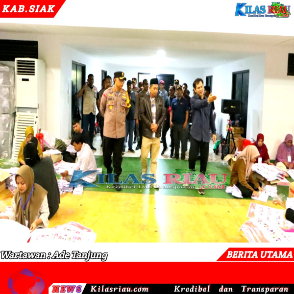 Kapolres Siak yang di dampingi anggota KPU Provinsi Riau Nugroho Susanto dan didampingi Ketua KPU Kabupaten Siak Ahmad Rizal juga ikut dalam mengecek secara elektronik melalui CCTV dan lain-lain