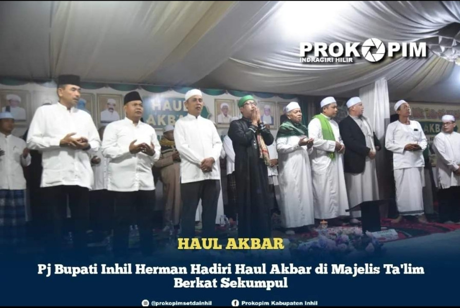 KILASRIAU.com - Penjabat (Pj) Bupati Inhil, Herman menghadiri Haul Akbar, Haul Tuan-Tuan Guru dan Haul Jama' yang bertepatan dengan Haul Abah Guru Sekumpul, Haul Syekh Muhammad Ali Bin Syekh Abdul Wahab yang digelar di Majelis Ta'lim Berkat Sekumpul Jl. Trimas, Kamis (11/01/2024) malam.