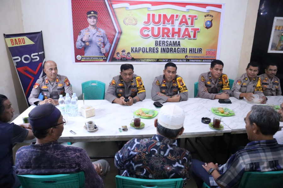 KILASRIAU.com - Polres Inhil menggelar program Jumat Curhat di Warung Kopi Semampau, Kecamatan Tembilahan Kabupaten Inhil, Jumat (12/1/2023).