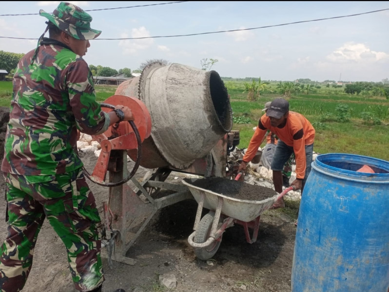 Babinsa Sarirejo Bantu Garap Pembangunan Tembok Penahan Tanah