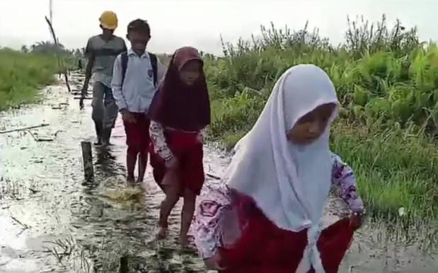 Berdasarkan pantauan, Pelajar-pelajar tersebut harus membuka sepatu dan berjalan dengan hati-hati. Pasalnya sepanjang jalan akses utama masyarakat ini sudah tergenang air.