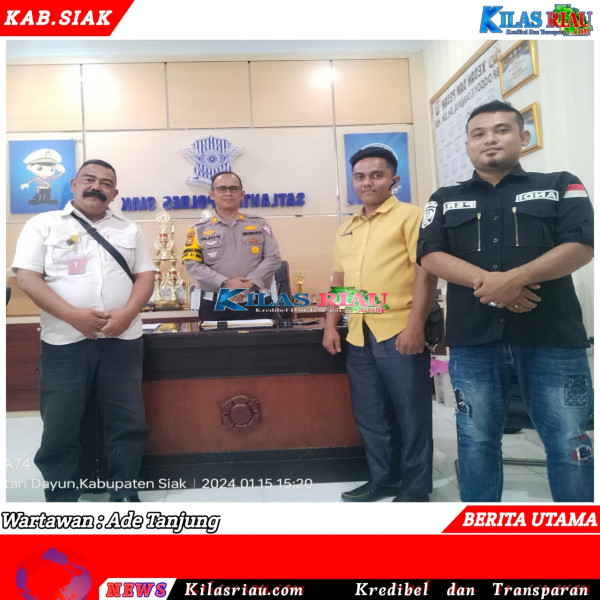 KILASRIAU.COM, Siak – Awak media lakukan temu ramah dengan Kasat Lantas Polres Siak dalam agenda silaturahmi untuk menjalin kedekatan antara awak media dengan Kepolisian dalam mewujudkan Presisi. Saat temu ramah tersebut terdapat tiga media antara lain, Kilasriau.com, Sahabattnipolri.com, Sindonews86.com yang bertempat di Polres Siak, Kecamatan Dayun, Kabupaten Siak, Senin (15/01/2024).