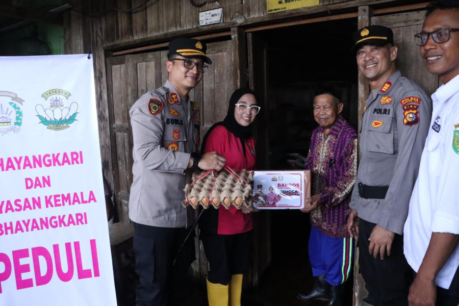 KILASRIAU.com - Kapolres Indragiri Hilir (Inhil) AKBP Budi Setiawan memberikan bantuan sosial kepada masyarakat terdampak banjir di Desa Sialang Panjang, Kecamatan Tembilahan Hulu, Rabu (17/1/2024).