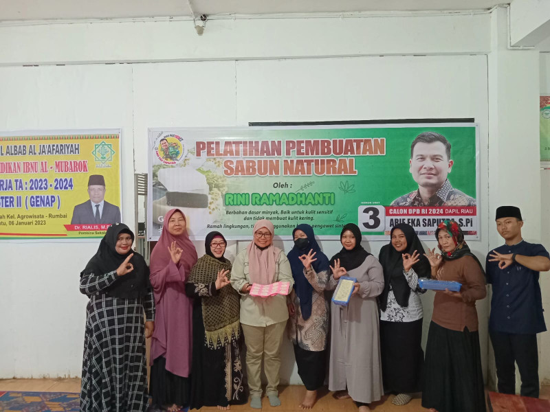 KILASRIAU.com - Arif Eka Saputra, Calon Legislatif DPD RI Nomor Urut 3 Dapil Riau, terus aktif dalam mendukung pengembangan Usaha Mikro, Kecil, dan Menengah (UMKM) di Provinsi Riau. Pada hari Rabu, 17 Januari 2024, Arif bersama trainer Pembuatan Sabun Natural, Rini Ramadhanti, menyelenggarakan pelatihan pembuatan sabun alami dengan bahan minyak nabati dan minyak jelanta di pondok pesantren Ibnu Al Mubarok di Palas Rumbai.
