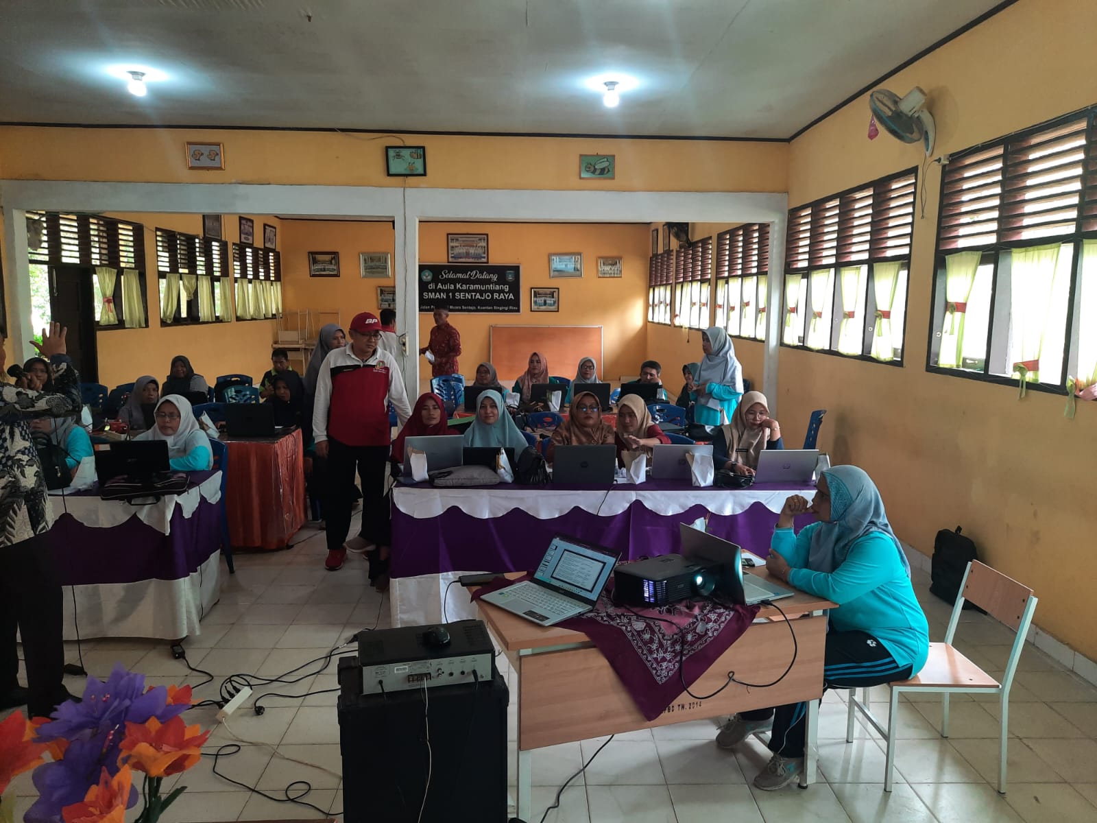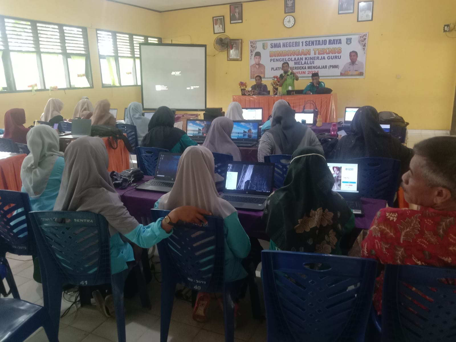 SENTAJO RAYA (KILASRIAU.Com) - Sekolah Menengah Atas Negeri 1 (SMA N 1) Sentajo Raya, Kabupaten Kuantan Singingi, Provinsi Riau, taja Bimbingan Teknis (Bimtek) Pengelolan Kinerja Platform Merdeka Mengajar (PMM) yang diikuti guru PNS dan PPPK di Aula Karumantiang SMA Negeri 1 Sentajo Raya. Kamis (18/01/2024).