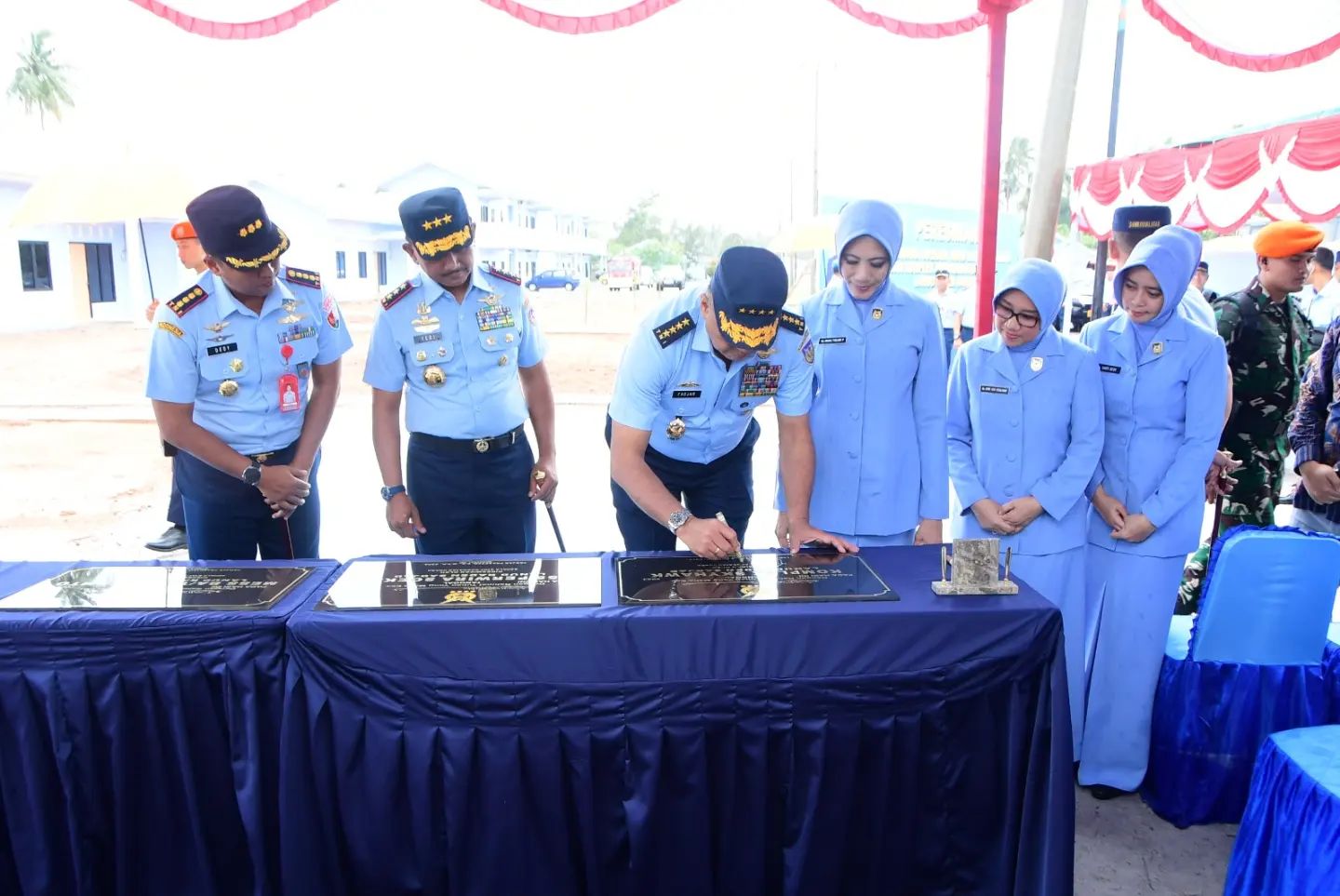 Acara peresmian diawali dengan doa bersama, pembukaan tirai plang komplek perumahan Skyhawk dan penandatanganan Prasasti oleh Kasau dan Ketum PIA serta melaksanakan peninjauan perumahan.