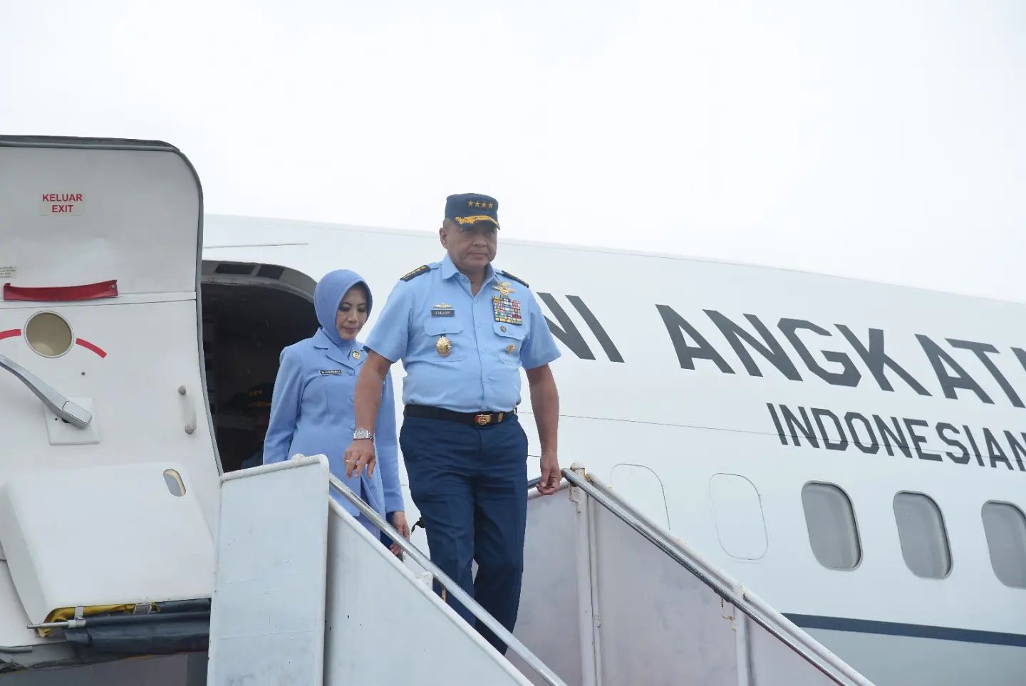 Kilasriau.com - Kepala Staf Angkatan Udara (Kasau) Marsekal TNI Fadjar Prasetyo, S.E., M.P.P., CSFA., dan Ketua Umum (Ketum) PIA Ardhya Garini (AG) Ibu Inong Fadjar Prasetyo beserta rombongan melakukan kunjungan kerja di Pangkalan TNI Angkatan Udara (Lanud) Raden Sadjad (RSA) di Kabupaten Natuna, Provinsi Kepulauan Riau, Kamis (18/1/2024).