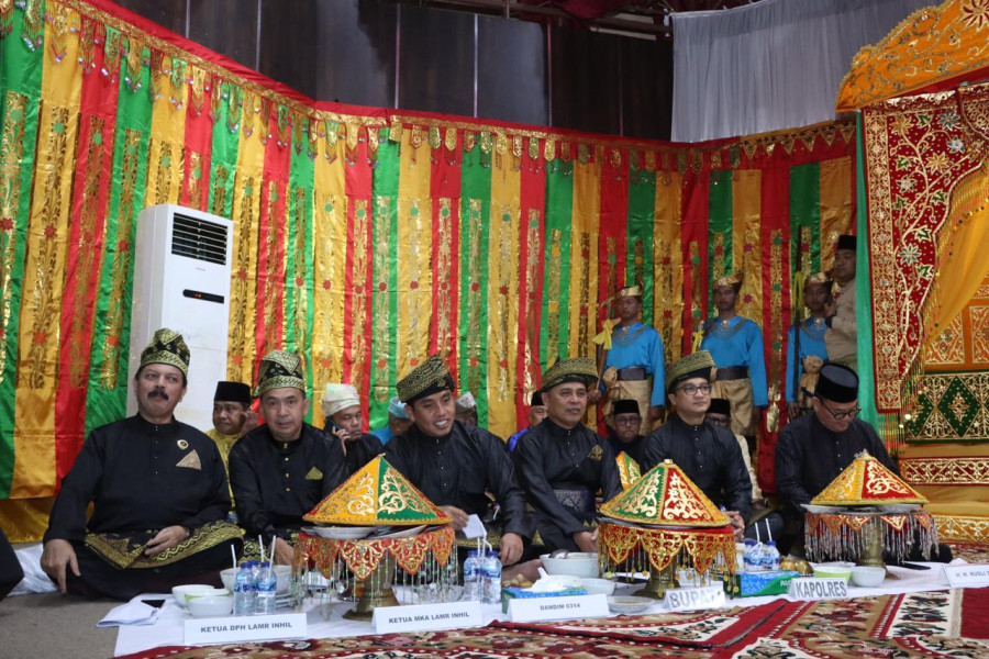 Selain Kapolres Inhil, Pj Bupati Inhil Herman dan Dandim 0314/Inhil, Letkol Inf Fikky Nur Kuncoro Jati, turut serta dalam acara adat Melayu tersebut.