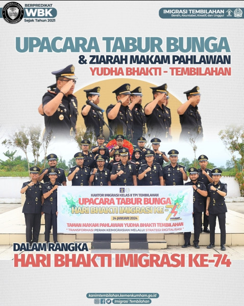 Kemudian, upacara Tabur Bungan dan Ziarah Makam Pahlawan ini merupakan bagian dari rangkaian peringatan Hari Bhakti Imigrasi (HBI) Ke-74, dimana pada tanggal 26 Januari 2024 nanti, merupakan 74 tahun instansi keimigrasian telah beridiri.