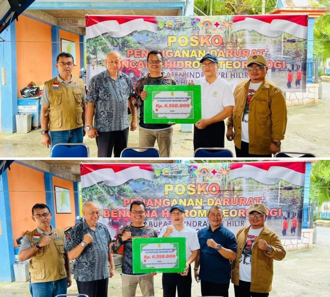 Sekretaris Daerah Kab.Inhil yang diwakili Asiaten Adminiatrasi Umum Setda Kab.Inhil H.Fajar Husin menyerahkan langsung bantuan dana dan di terima oleh Kalaksa BPBD Kab.inhil.