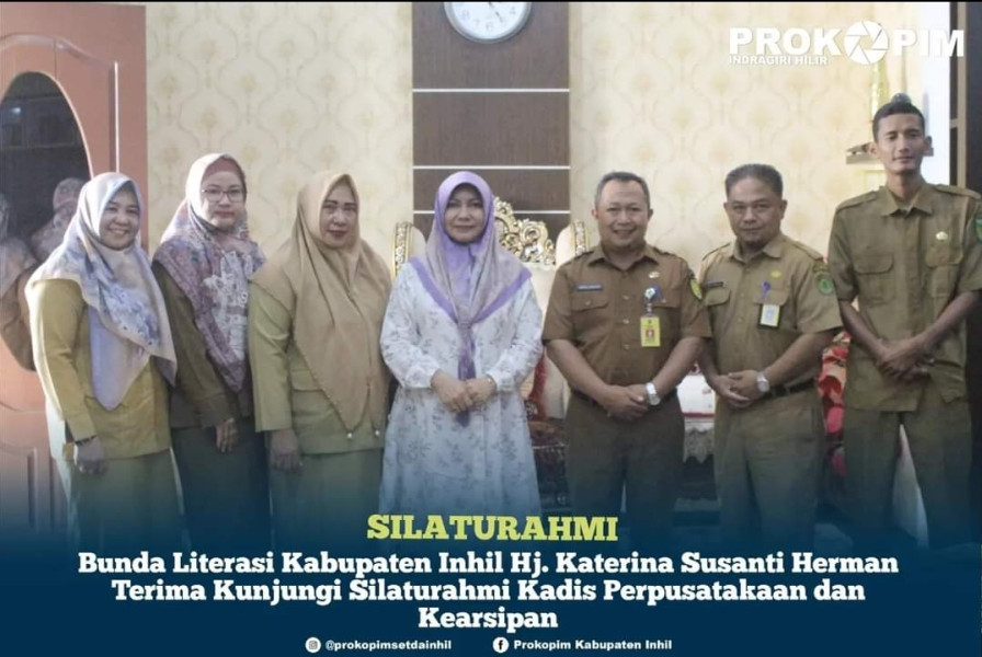 KILASRIAU.com - Kepala Dinas Perpustakaan dan Kearsipan Kabupaten Inhil bersama jajaran melakukan silaturahmi bersama Bunda Literasi Kabupaten Indragiri Hilir Katerina Susanti Herman bertempat di Kediaman Bupati Jl. Kesehatan Tembilahan.