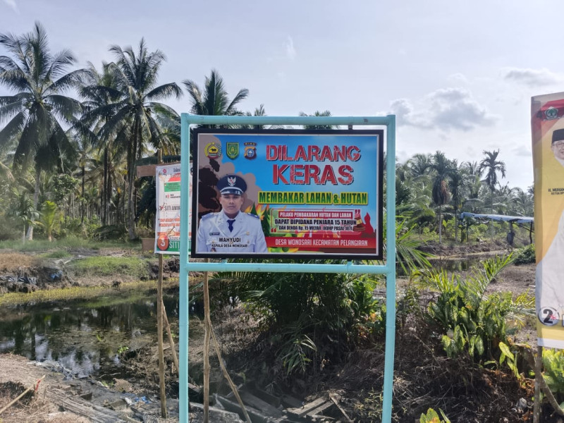 KILASRIAU.com - Menjaga agar lingkungan lahan dan hutan tetap terjaga aman Pemdes Wonosari, Kecamatan Pelangiran, Kabupaten Inhil melakukan sosialisasi di wilayah Desa nya.