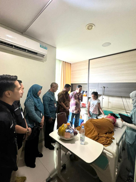 BPJAMSOSTEK Pekanbaru Kota mengunjungi dua peserta yang mengalami kecelakaan kerja di RS Awal Bross Ahmad Yani dan RS Syafira, Kamis (15/2/2024). Pada kunjungan ini, Kacab BPJAMSOSTEK Pekanbaru Kota, Iman S Achwan turut didampingi Kabid KSI BPJAMSOSTEK Pekanbaru Kota, Dina, Kabag Tata Pemerintahan Pemko Pekanbaru, Kasatpol PP Pekanbaru, Zulfahmi Adrian dan Kepala Disketapang Pekanbaru, Maisisco.