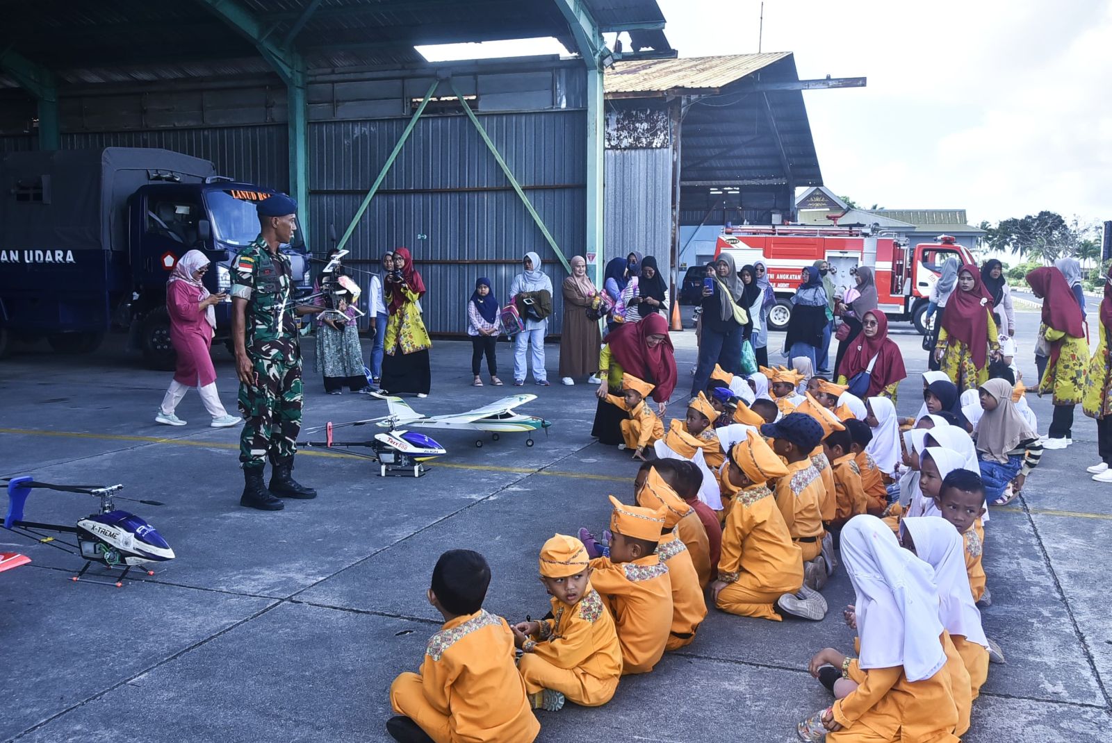 Kegiatan diawali dengan foto bersama di Main Apron Lanud RSA. Kemudian, anak-anak diajak untuk mengenal pesawat aeromodeling Binpotdirga Lanud RSA, pengenalan mobil Pemadam Kebakaran( PK) dan menonton video tentang TNI AU. Terakhir, anak-anak juga diajak untuk berkeliling Bandara Raden Sadjad Natuna.