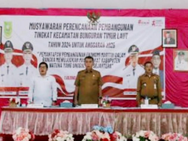 Sedangkan, Yunalis, Camat Bunguran Timur Laut dalam sambutannya menyebutkan Musrenbang Kecamatan Bunguran Timur Laut dimulai dari Musrenbang tingkat Desa yang ada di Kecamatan Bunguran Timur Laut.