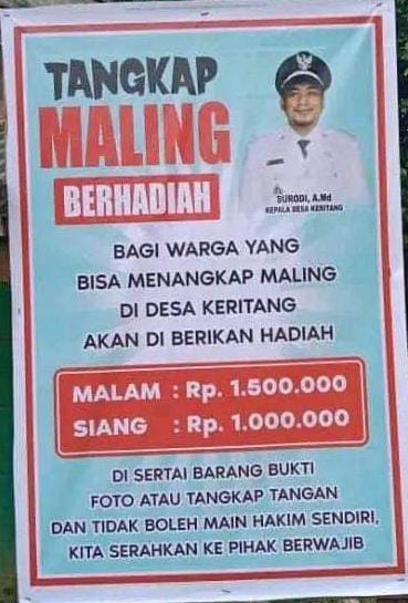 Banyak Maling di Desa, Kades Keritang Bikin Sayembara Tangkap Maling Berhadiah 1,5 Juta