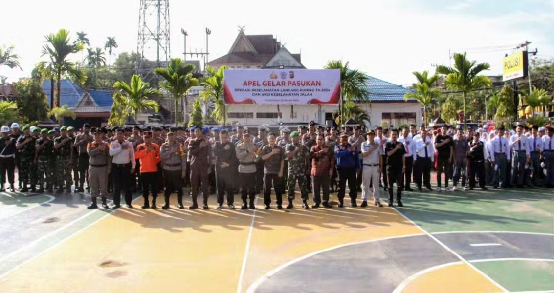KILASRIAU.com - Kepolisian Resor (Polres) Indragiri Hilir menggelar apel gelar pasukan Operasi Keselamatan Lancang Kuning 2024 dan Pencanangan Aksi Keselamatan Jalan, di halaman depan Mapolres Inhil, Tembilahan, Sabtu (2/3/2024).