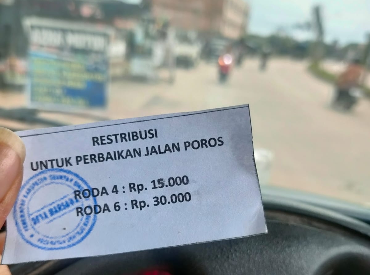 "Alasan mereka, memungut retribusi untuk memperbaiki jalan poros yang rusak itu," ujar Hen.