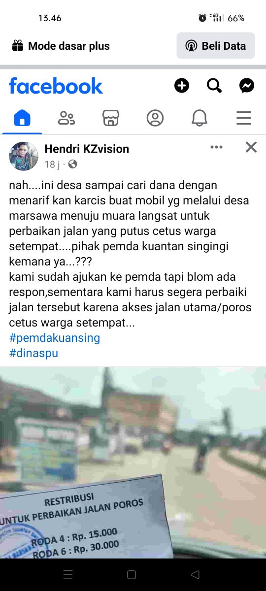 Pemilik Akun Hendri KZvision, Hen saat dikonfirmasi kilasriau melalui whatsapps membenarkan hal tersebut. Dia mengatakan, postingan yang ada di beranda akun facebooknya itu beberapa saat setelah membayar retribusi yang dipungut warga Marsawa itu.