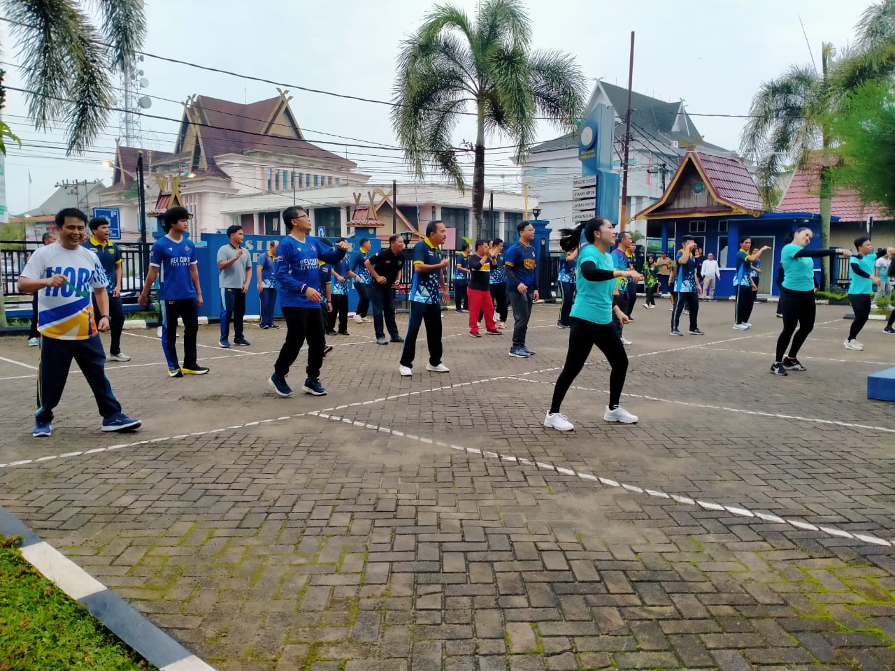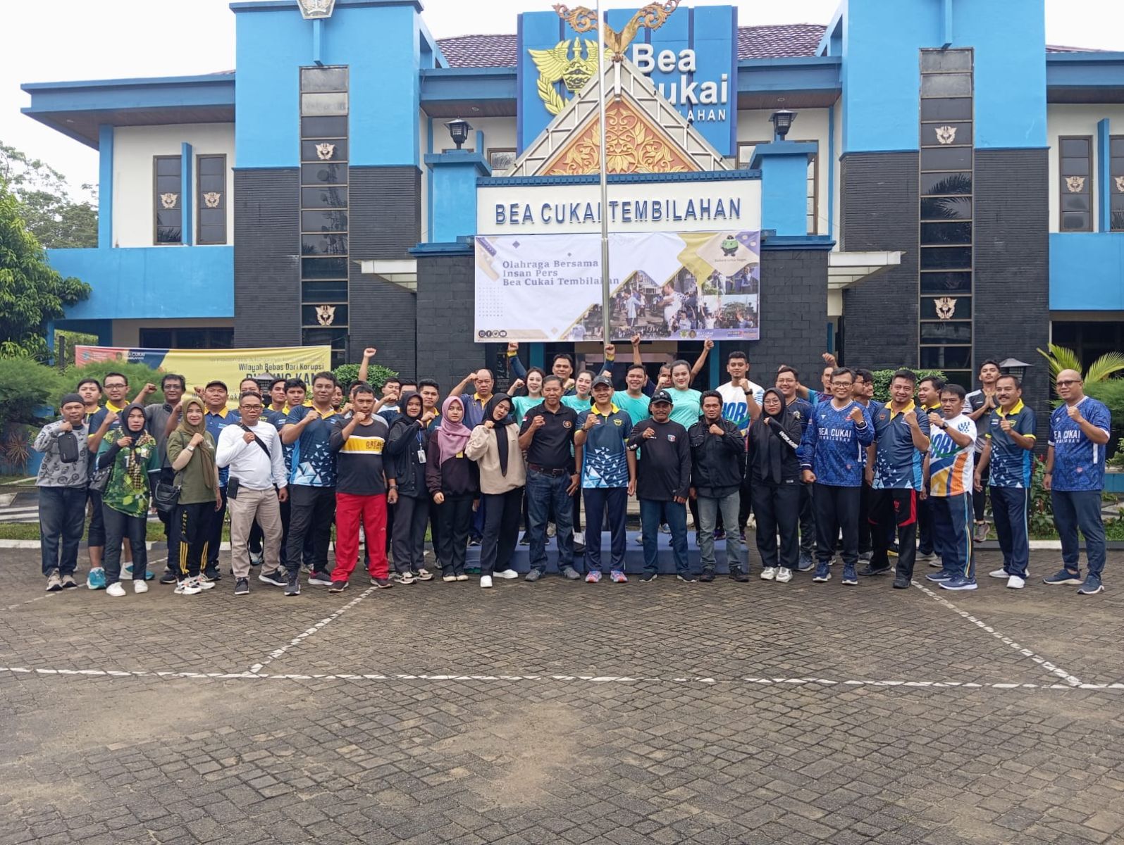 Pelayanan Bea dan Cukai Tipe Madya Pabean C (KPPBC TMP C) Tembilahan bersama Insan Pers melakukan olahraga bersama di lapangan parkir Kantor Bea Cukai Tembilahan Jalan Jenderal Sudirman No. 48, Jum'at (8/3/24) pagi.