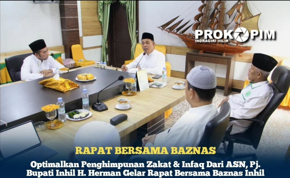 KILASRIAU.com -Dalam rangka optimalisasi penghimpunan zakat dan infaq dari Aparatur Sipil Negara (ASN) yang beragama Islam di lingkungan Pemerintah Kabupaten Indragiri Hilir, Penjabat Bupati Inhil H. Herman, memimpin rapat terbatas bersama pengurus Baznas Inhil dan Ketua MUI Inhil di ruang rapat kediaman rumah dinas Bupati, Tembilahan, Senen, (11/03/2024).
