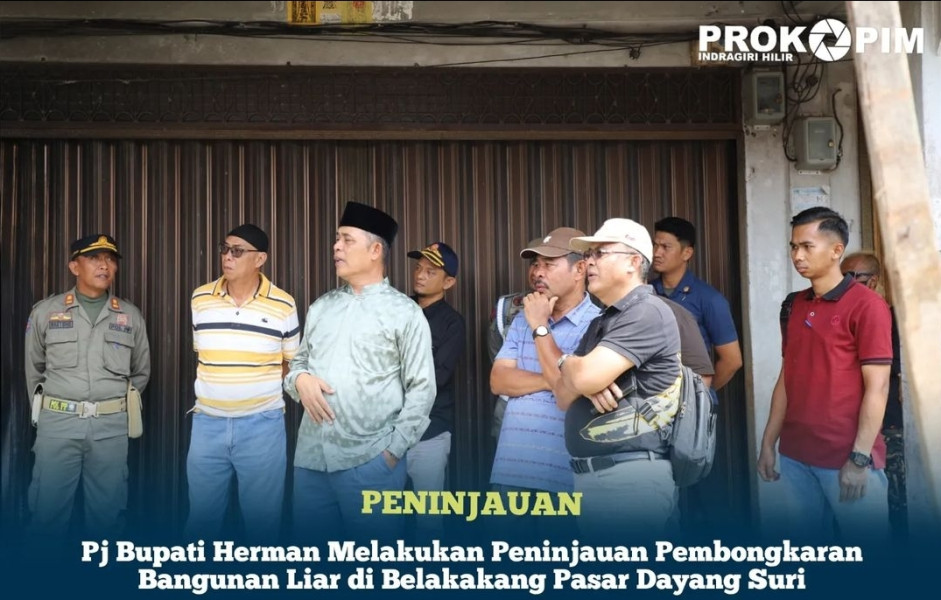 Kali ini diawal puasa, Selasa (12/03/2024), Kembali Pj.Bupati Herman meninjau langsung proses pembongkaran bangunan belakang pasar Dayang Suri tersebut dengan melibatkan beberapa OPD yakni Satpol PP, Dinas PUPR, dan Dinas Perindag Kab.Inhil.
