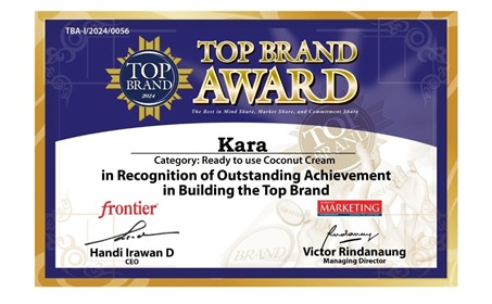Berdasarkan hasil survei Top Brand Award yang dilakukan oleh Frontier Group, KARA berhasil menempati peringkat teratas dengan Top Brand Index (TBI) mencapai 86.7% untuk kategori santan siap pakai. Index ini terbilang terjaga dengan masih dipercaya diatas 85%. Untuk kategori nata de coco, KARA memperoleh Top Brand Index (TBI) sebesar 21.20%. Sebuah kebanggaan tersendiri bahwa kepercayaan konsumen akan produk KARA seakan tak lekang oleh waktu dan senantiasa menemani perjalanan KARA.