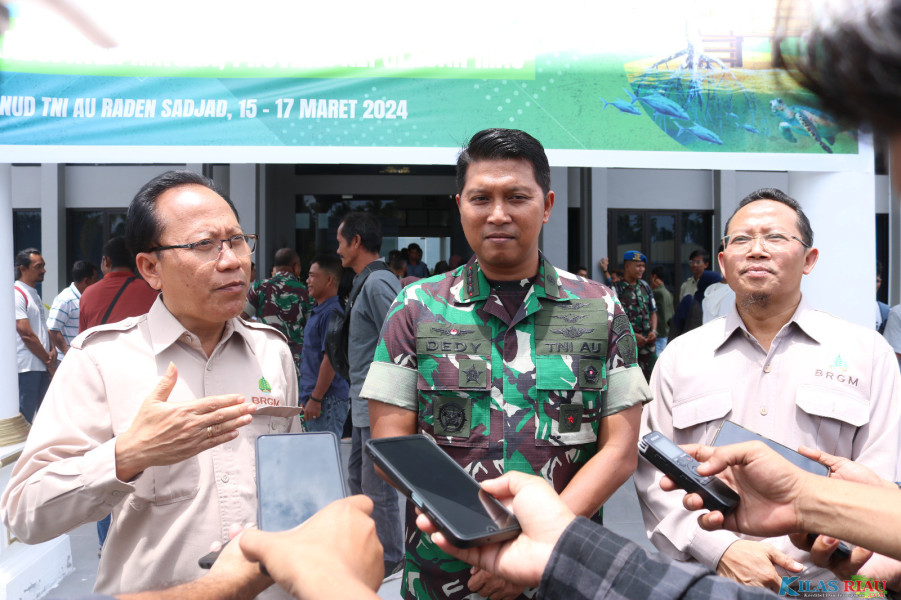 Kilasriau.com - Badan Restorasi Gambut dan Mangrove (BRGM) bersama TNI Angkatan Udara (AU) Lanud Raden Sadjad (RSA) Natuna menyelenggarakan Sekolah Lapang Mangrove bertempat di VIP Room Graha Serasan Lanud RSA, Kabupaten Natuna, Kepulauan Riau, Jumat (15/3/2024).