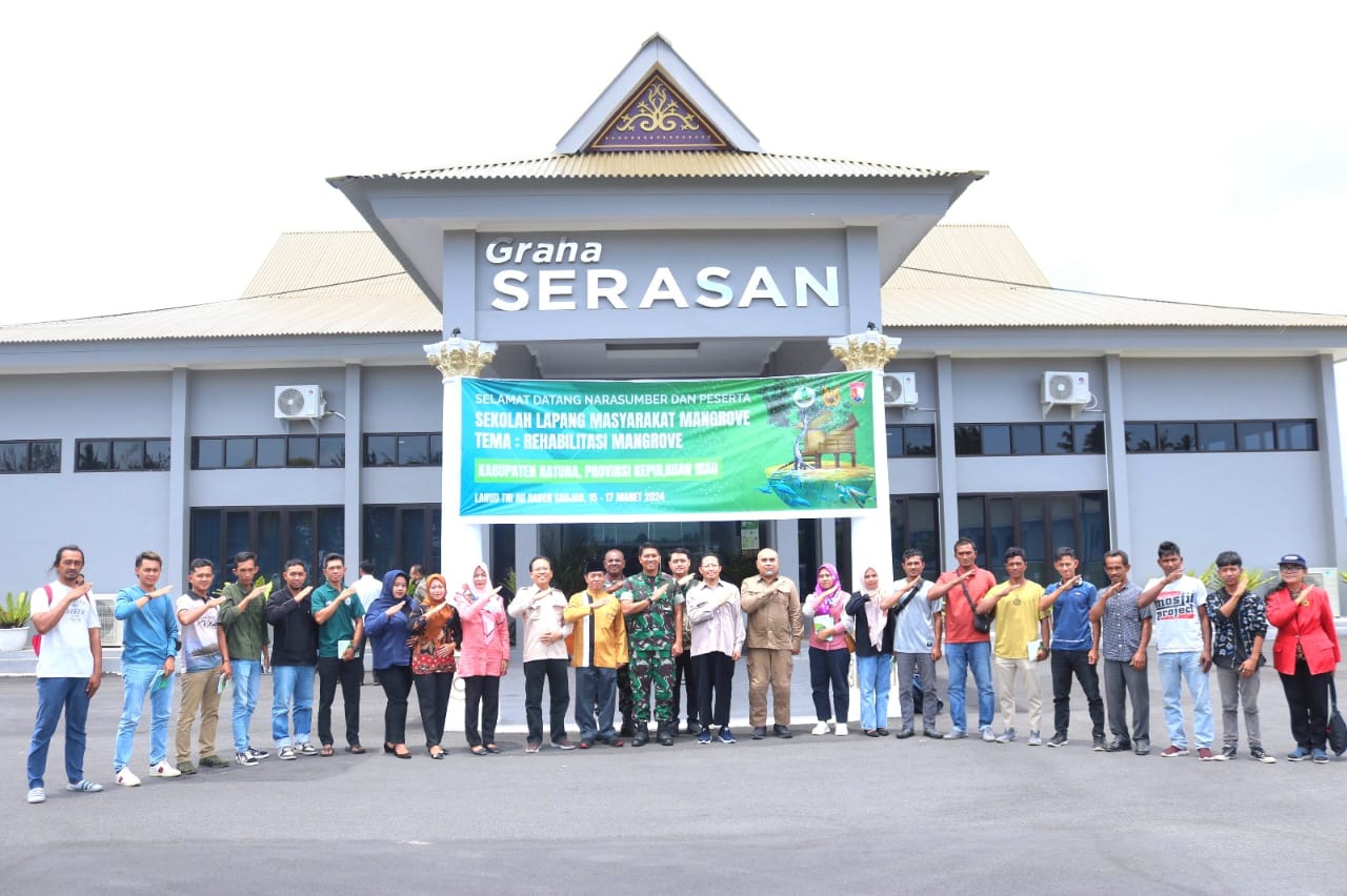 Sekolah Lapang Mangrove diikuti oleh 106 orang peserta yang terdiri dari Kelompok Tani Tucano Jaya Lanud RSA Kelurahan Batu Hitam Kecamatan Bunguran Timur, Kelompok Masyarakat Tunas Bakau Desa Semedang Bunguran Barat, Kelompok Semitan Jaya Desa Pengadah Bunguran Timur Laut, Kelompok Tani Sejahtera Desa Kelanga Bunguran Timur Laut, Kelompok Masyarakat Rumpun Bakau Desa Kelarik Bunguran Utara dan Kelompok Tani Tanjung Meru Cemaga Utara Bunguran Selatan serta perangkat desa.