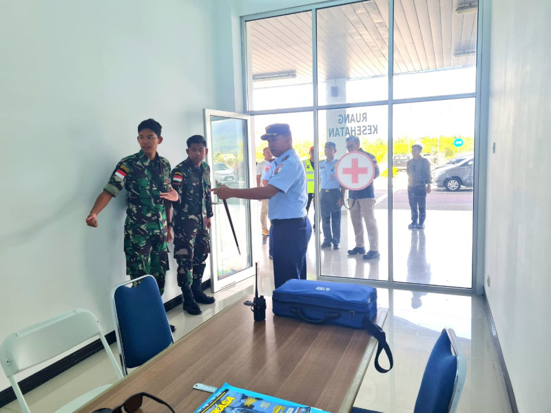 Danlanud RSA Natuna meninjau berbagai fasilitas di Bandara RSA Natuna, seperti ruang tunggu, posko kesehatan TNI AU, area check-in dan tempat X-Ray Bandara RSA.