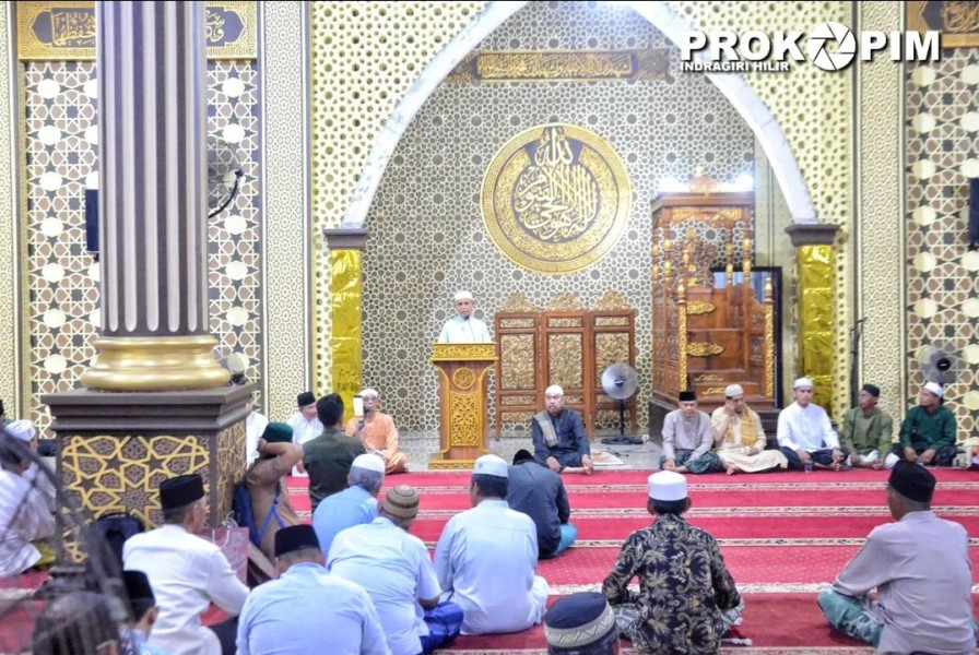 Malam ke 21 Ramadhan Pj Bupati Inhil Laksanakan Shalat Taraweh Berjamaah di Masjid Besar Nurul Jama'ah Kuala Enok