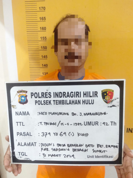 "Pada hari Jum'at tanggal 29 Maret 2024 sekira jam 23.30 WIB kami berhasil mengamankan Terlapor NM di Sumatra Utara dan kemudian membawa Terlapor ke Polsek Tembilahan Hulu untuk menjalani proses hukum," ujar Kapolsek Tembilahan Hulu, Selasa (02/04/2024).