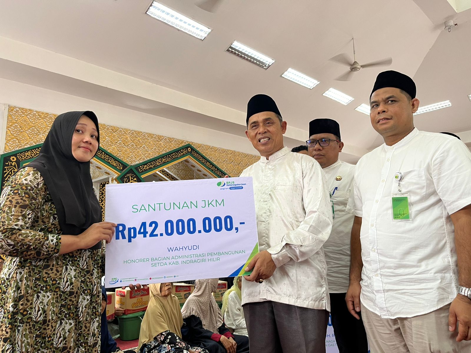 PJ Bupati Indragiri Hilir Serahkan Santunan Jaminan Kematian BPJS Ketenagakerjaan 42 Juta Rupiah di Kecamatan Tembilahan Hulu
