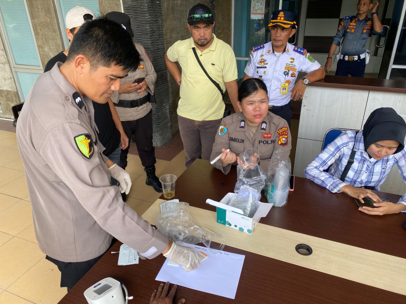 Satgas Operasi Ketupat Lancang Kuning 2024 Melakukan Pengecekan Tes Urine Sopir Travel dan Truck Ekspedisi