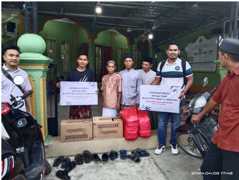 Suasana penyerahan takjil kepada masyarakat yang dilakukan oleh FIFGROUP Kabupaten Indragiri Hilir kepada Mesjid Al-Munawwarah, sebagai kegiatan menjelang Hari Raya Idul Fitri 1445 H.