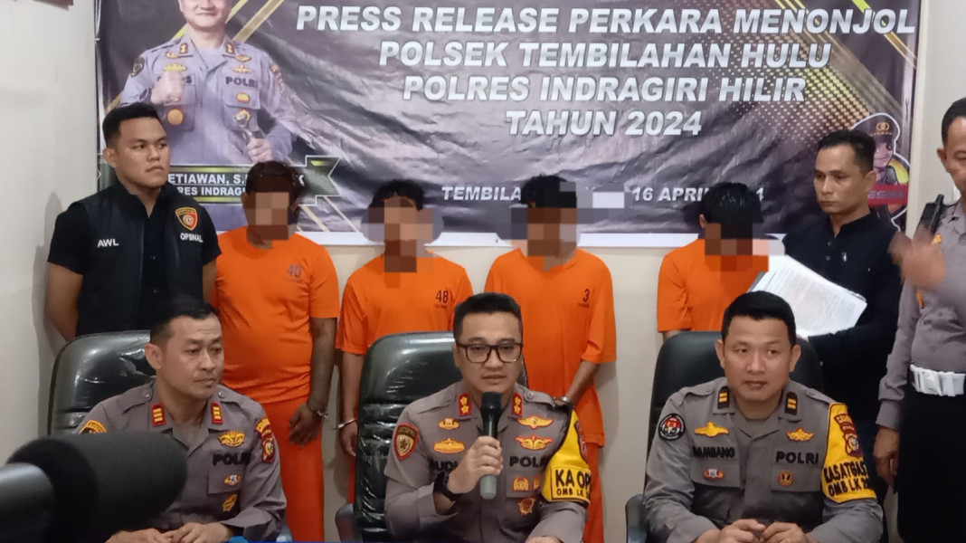 "Tiga pelaku diamankan di Jalan Suhada Tembilahan Hulu, satu pelaku lagi diamankan di Jalan Lingkar Tembilahan. Dari hasil penyidikan ternyata 3 pelaku adalah residivis kasus penganiayaan, dan 1 pelaku kasus Pencurian dengan kekerasan (Curas)," paparnya.
