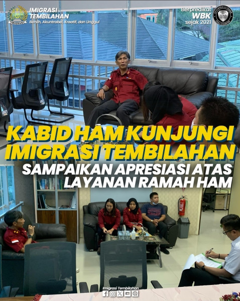 Kunjungan Kabid HAM kali ini untuk meninjau pelayanan ramah HAM pada instansi pemerintah di Kota Tembilahan. Imgirasi Tembilahan sendiri sudah 3 (tiga) tahun terakhir berhasil memperoleh Penghargaan sebagai UPT Keimigrasian dengan Penyelenggara Pelayanan Publik Berbasis HAM (P2HAM).