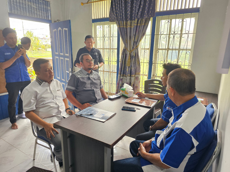 Dani M Nursalam bersama Ketua DPC PKB Inhil, Iwan Taruna beserta tim pemenangan disambut hangat Ketua DPC Demokrat Inhil, H. Syamsudin Uti dan pengurus di Sekretariat Jalan Soebrantas Tembilahan, Kamis (25/4/2024).