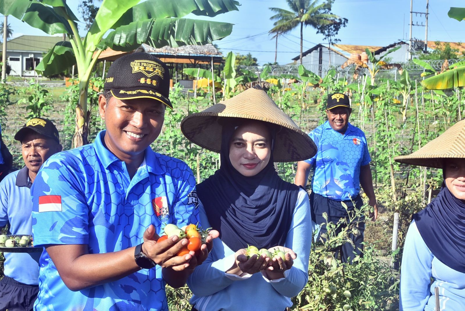 KILASRIAU.com - Komandan Lanud Raden Sadjad (RSA) Natuna, Kolonel Pnb Dedy Iskandar, S.Sos., M.M.S., M.Han., dan Ketua PIA Ardhya Garini Cab.17/D.I Lanud RSA, Ny. Santi Dedy Iskandar, panen raya tomat, cabe, terong, dan labu air di RSA Farm Lanud RSA Natuna, Provinsi Kepulauan Riau, Jumat (26/4/2024).