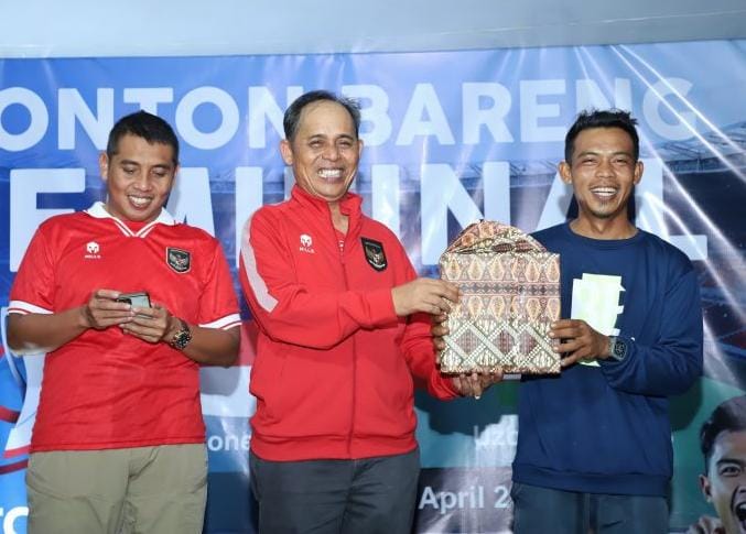 “Kegiatan nobar ini sengaja diselenggarakan untuk menyemangati Timnas Indonesia dan sekaligus sebagai bentuk dukungan masyarakat Kota Tembilahan kepada Garuda Muda yang berlaga di turnamen Internasional menghadapi Timnas Uzbekistan”, ucap Pj. Bupati.