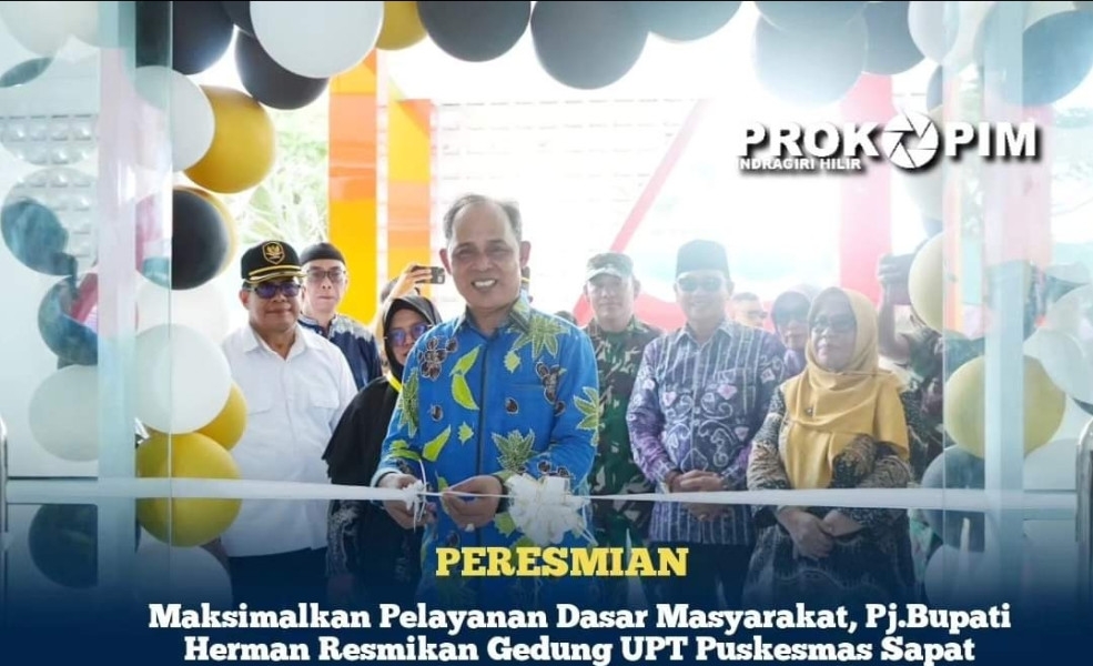 KILASRIAU.com, Sapat - Pj.Bupati Herman secara lansung meresmikan Gedung Unit Pelayanan Teknis (UPT) Pusat Kesehatan Masyarakat (Puskesmas) sapat Kecamatan Kuala Indragiri (Kuindra), Rabu (1/5/2024) siang.