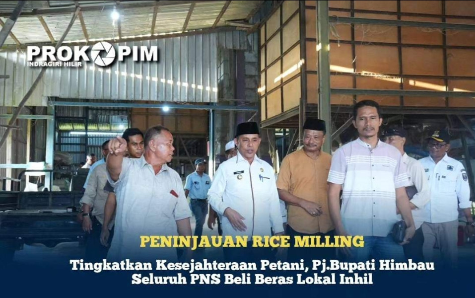 KILASRIAU.com, Kempas Jaya - Tingkat Kesejahteraan Petani, Kedepan Pj.Bupati Herman akan keluarkan surat edaran berupa himbauan kepada seluruh PNS dilingkungan Pemda Inhil untuk membeli beras lokal, hal ini diungkapkan Pj.Bupati Herman saat meninjau proses produksi Kilang Padi / Rice Milling "Kerja sama" Kelurahan Kempas Jaya Kec.Kempas.