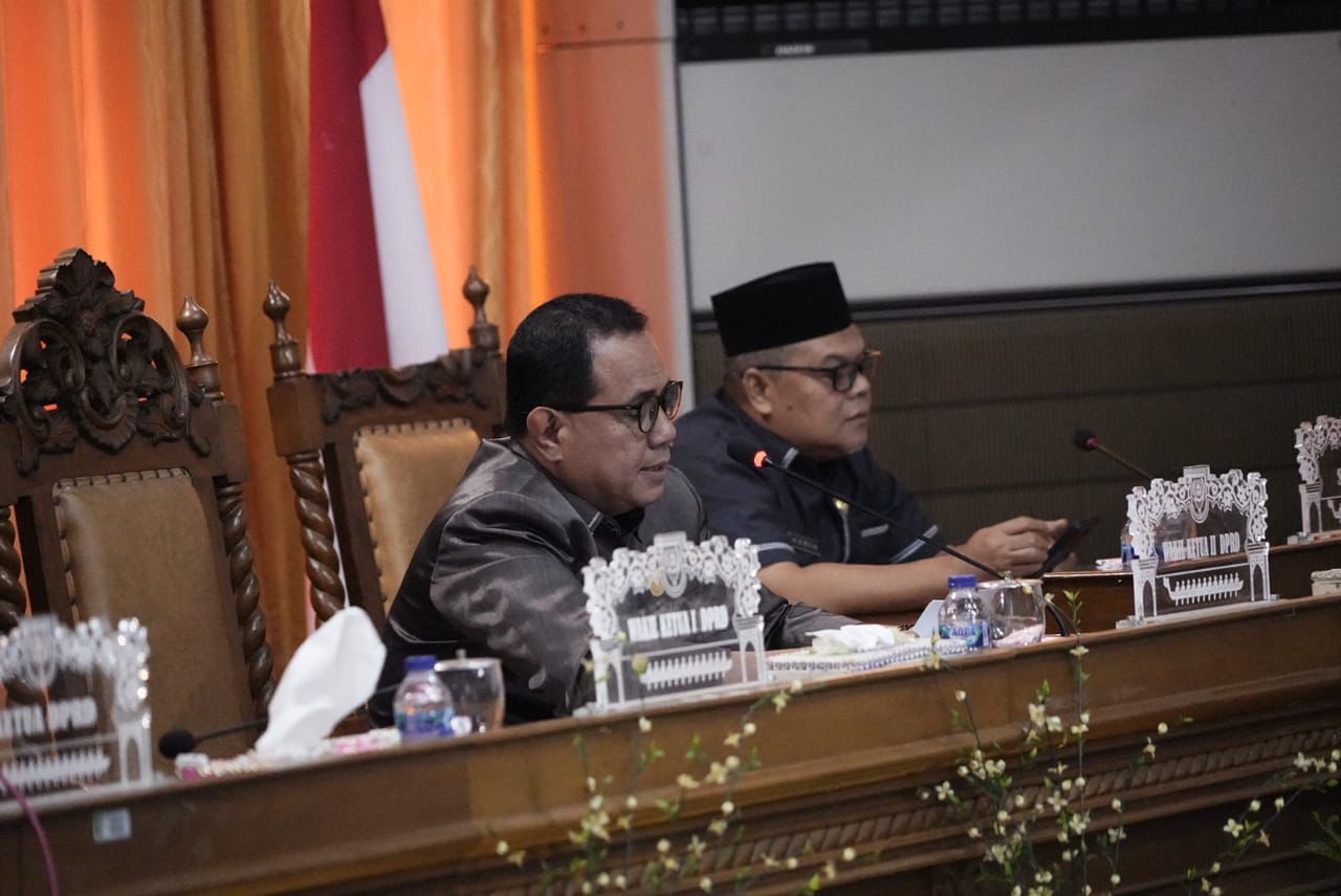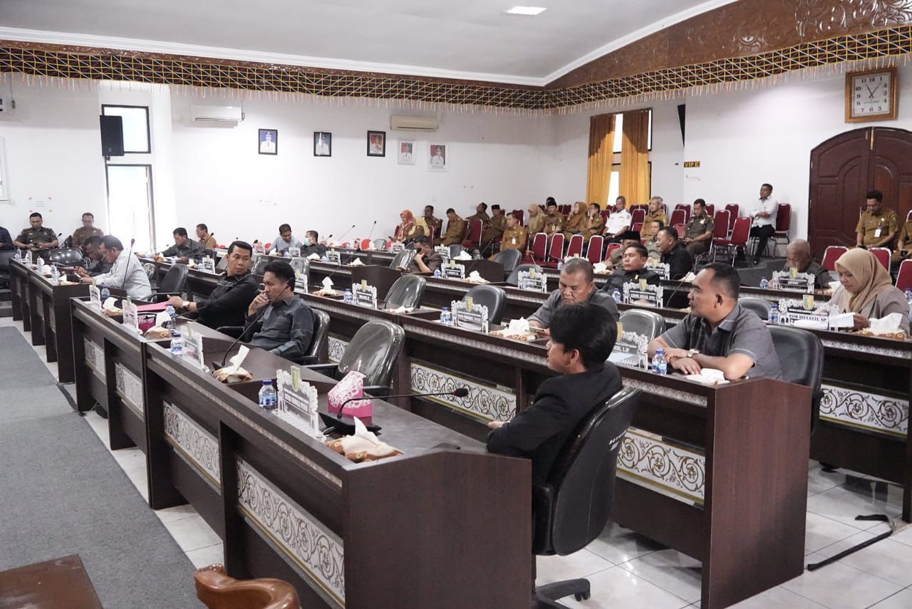 Rapat yang dipimpin langsung oleh Wakil Ketua II DPRD Jufrizal, SE.,M.Si, yang didampingi WAKA I Darmizar serta dihadiri 19 orang anggota DPRD dari 35 DPRD Kuansing, serta para pejabat di lingkup Pemerintah Daerah Kabupaten Kuansing.