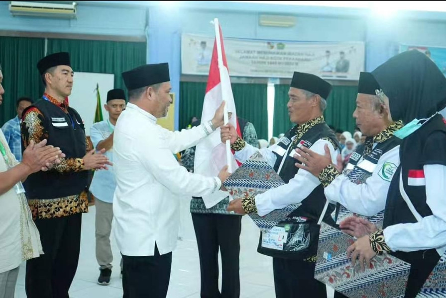 Di Tandai Dengan Penyerahan Bendera Merah Putih, Pj.Bupati Inhil Lepas 442 Orang JCH Kloter 7 Emberkasi BTH Batam