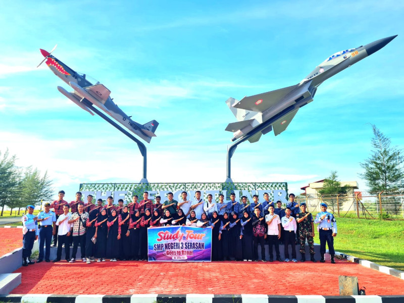 Kilasriau.com - Sebanyak 42 siswa - siswi dan Guru pendamping dari SMP Negeri 3 Pulau Batu Berian Kecamatan Serasan, Kabupaten Natuna, Provinsi Kepulauan Riau, mengadakan kunjungan pendidikan ke Pangkalan TNI AU Raden Sadjad (Lanud RSA) Natuna pada Rabu, (22/5/2024).