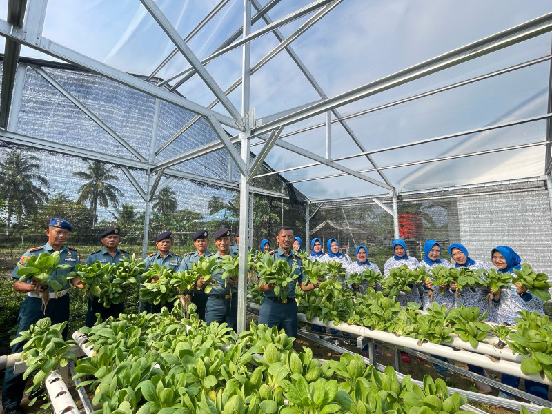 Pangkalan TNI AL Ranai Panen Sayur Hidroponik di Lahan Ketahanan Pangan Lanal Ranai