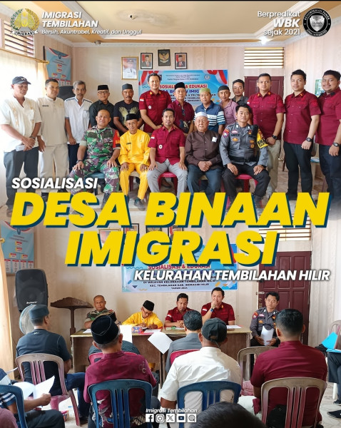 Bekerjasama dengan Kelurahan Tembilahan Hilir, dan dengan turut melibatkan unsur Babinsa dan Bhabinkamtibnas, Imigrasi Tembilahan mensosialisasikan tentang program desa binaan imigrasi serta pentingnya sinergi imigrasi dan peran pemerintah desa dan jajaran dalam melaksanakan tugas dan fungsi pengawasan, deteksi dini, dan pencegahan.