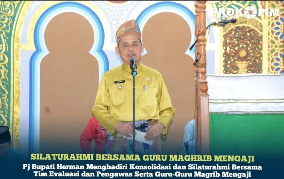 Pj Bupati Herman menyampaikan penghargaan kepada semua guru mengaji atas segala dedikasi dan kerja kerasnya dalam mendidik generasi muda di Kabupaten Inhil melalui program magrib mengaji.