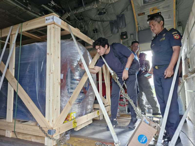 TNI AU Lanud RSA Natuna Dukung Pengangkutan Motor Pompa Air Minum Untuk IKN