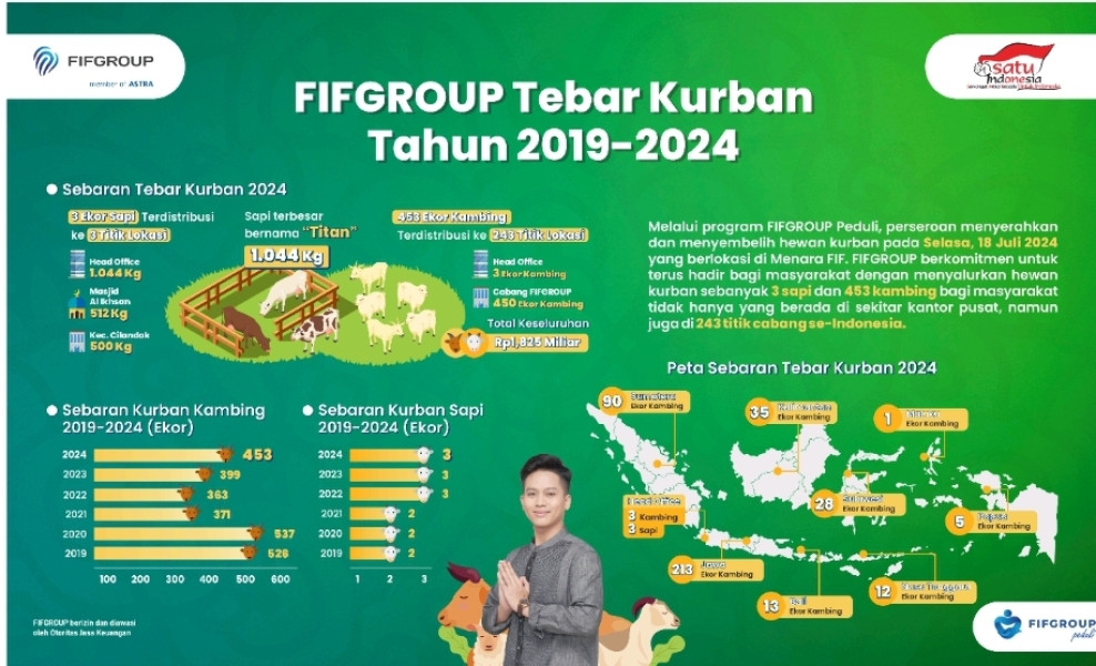 Tahun ini, kebahagiaan Idul Adha semakin terasa dengan total 456 hewan kurban dibagikan FIFGROUP. Terdiri dari 3 ekor sapi dan 453 ekor kambing, penyaluran hewan kurban senilai total Rp1,825 miliar berasal dari Dana Sosial Syariah FIFGROUP.